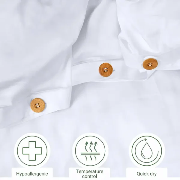 Los botones son de bambú y las fundas nórdicas están hechas de rayón de bambú, un recurso natural y renovable que tiene un número de hilos de 300.